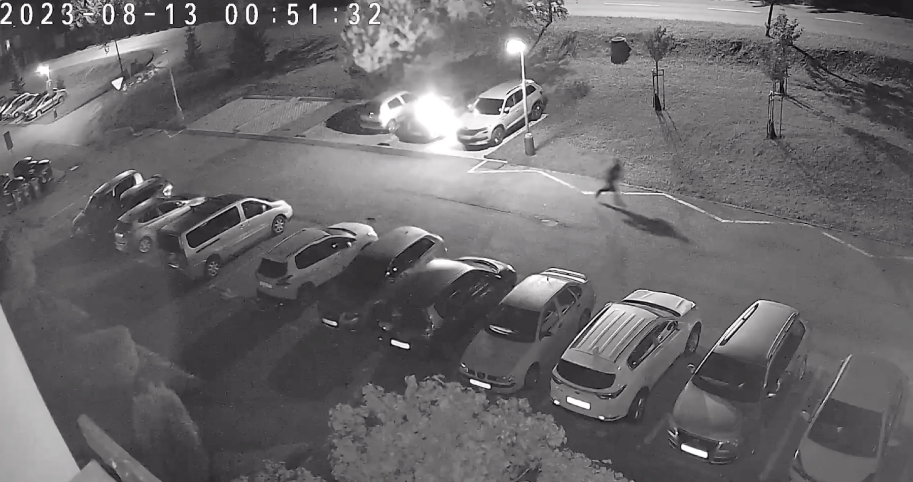 Podpálenie auto zaznamenané bezpečnostnou kamerou: