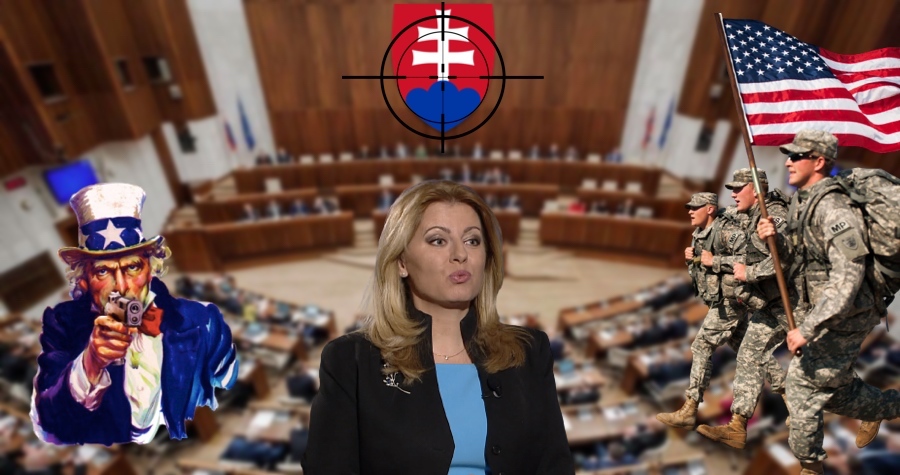 Americká agentka v kresle slovenskej prezidentky ťahajúca Slovensko do vojenského konfliktu sa poponáhľala podpísať zmluvu o okupácii vlastnej krajiny.