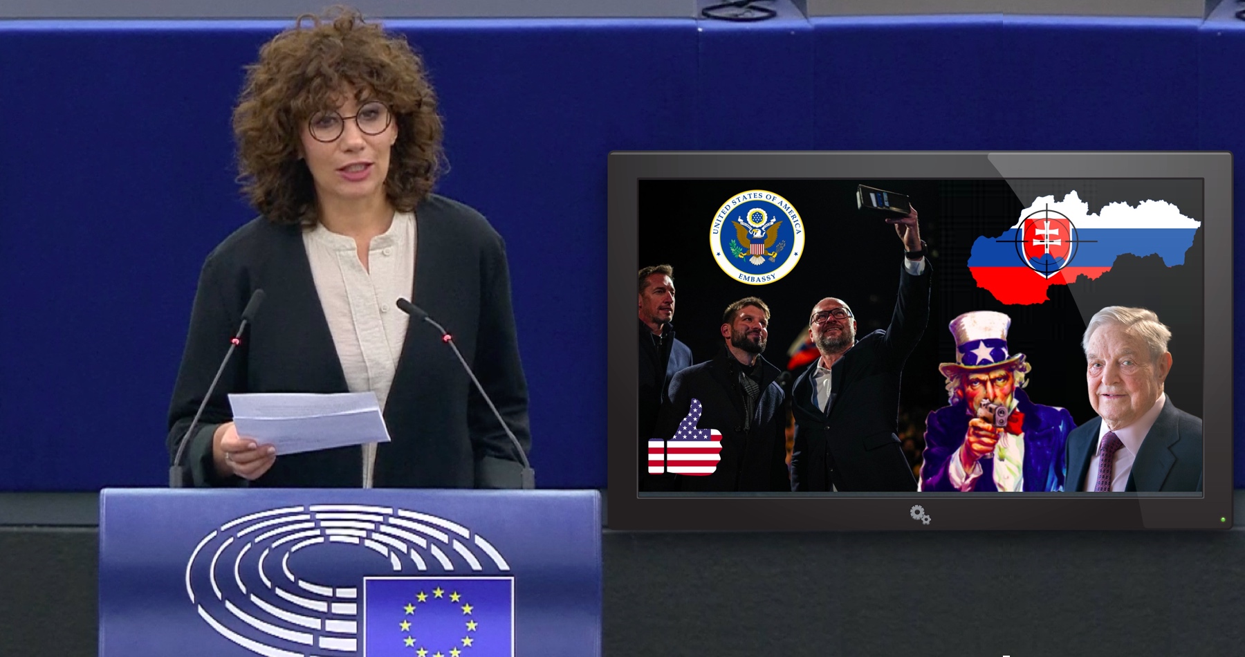 Video obsahuje zostrih tých, ktorí sa vyjadrovali v pléne EP dehonestujúco o Slovenskej republike, o jej novej vláde a teda aj o tých, ktorí volili víťazné strany, ktoré vládnu koalíciu zostavili.