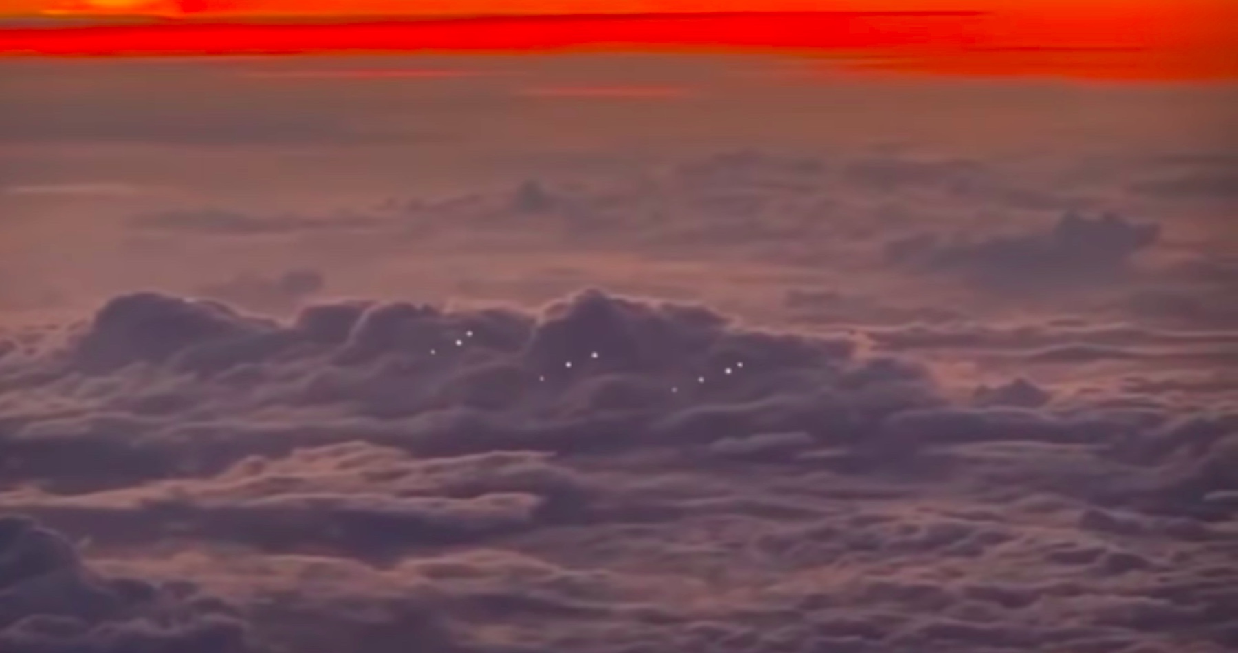 V krátkom klipe, ktorý pilot nahral z kabíny lietadla, môžete vidieť niekoľko drobných svetiel v radoch nad povrchom oceánu. V niektorých stĺpcoch sú tri svetlá nad sebou, v iných štyri.