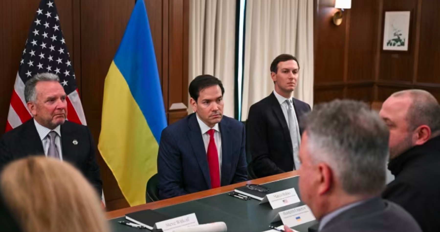 Vedúcim ukrajinskej delegácie na rokovaniach s USA v Ženeve bol Andrij Jermak, ktorý však v piatok odstúpil z funkcie vedúceho prezidentskej kancelárie. Stalo sa tak po tom, čo sa uňho v kancelárii a doma objavili vyšetrovatelia protikorupčných úradov. Jermak po rezignácii oznámil, že sa chystá slúžiť na fronte.