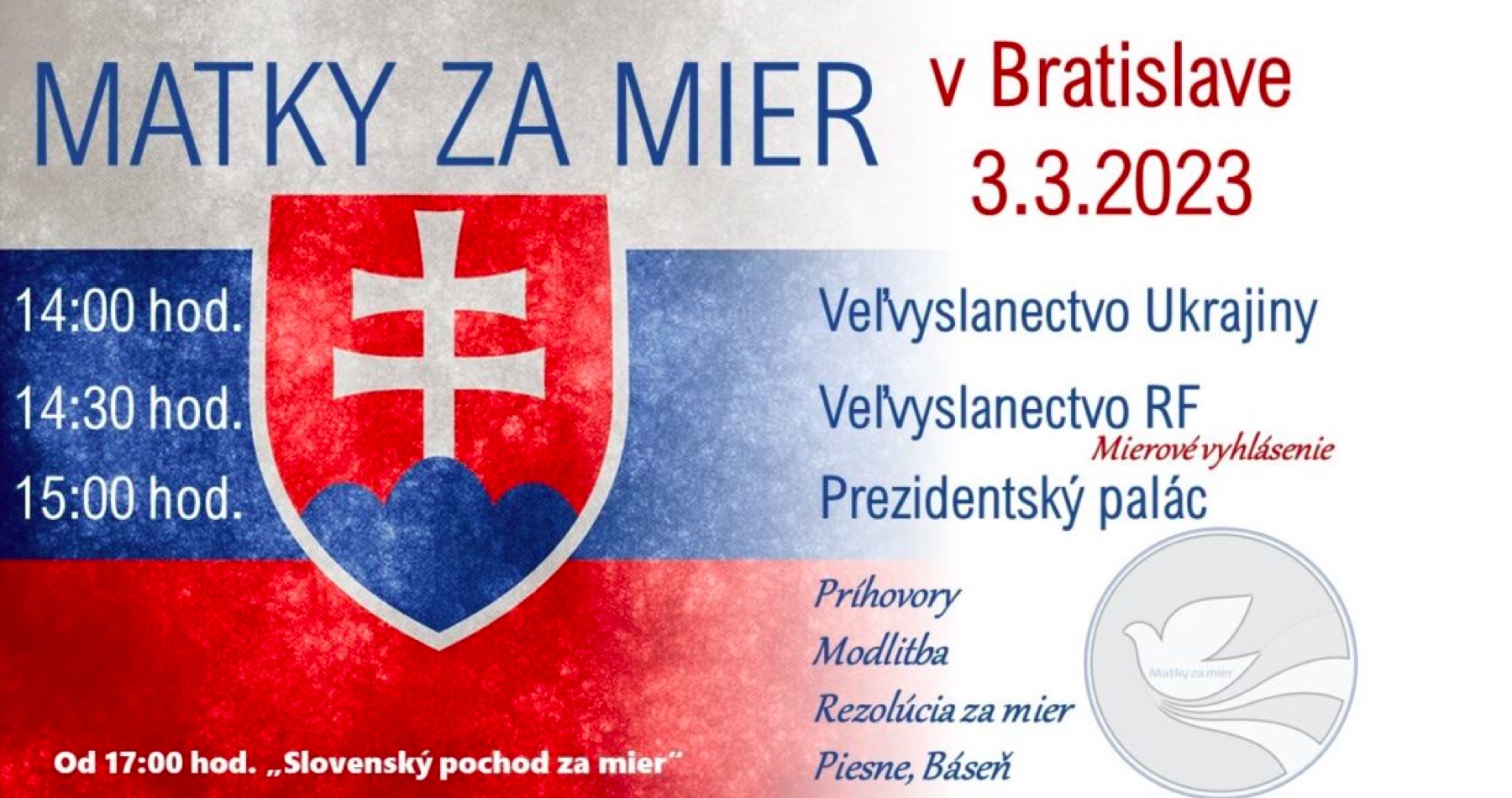 Mierový pochod ďalej pokračuje k Prezidentskému palácom na Hodžovom námestí, kde bude od 15:00 hod. prebiehať hlavný program.