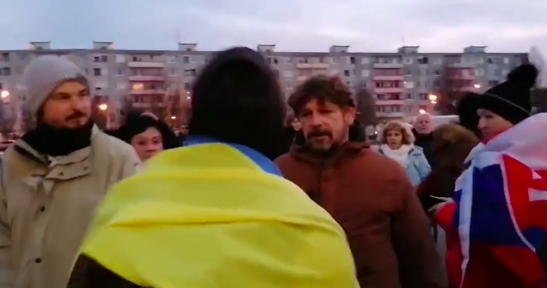 VIDEO: Pochod za mier v Lučenci chcel narušiť fanúšik banderovského režimu oblečený do ukrajinskej vlajky: „Vypadni si na Ukrajinu do p*či a choď bojovať“