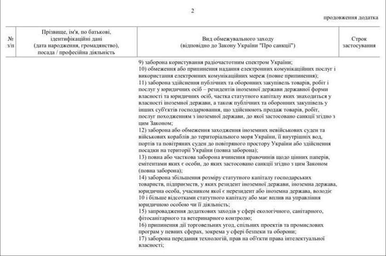 9) zákaz používání rádiového frekvenčního spektra Ukrajiny;