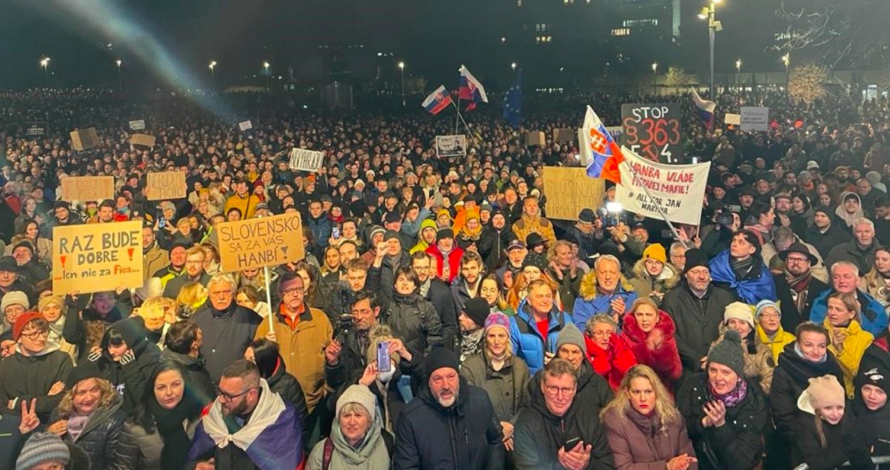 VIDEO: Podporovatelia progresívno-liberálnych síl sa opäť zhromaždili pred Úradom vlády SR, aby vypískali Ficovu vládu a freneticky tlieskali Lipšicovi & spol. a Sorosovej partičke okolo Šimečku, Sulíka a Majerského. Zhromaždení ľudia odmietajú rešpektovať demokratické voľby a vládu, ktorá z nich vzišla vďaka sľubom, že napraví zločiny spáchané počas Matovičo-Hegerovo-Ódorovho režimu