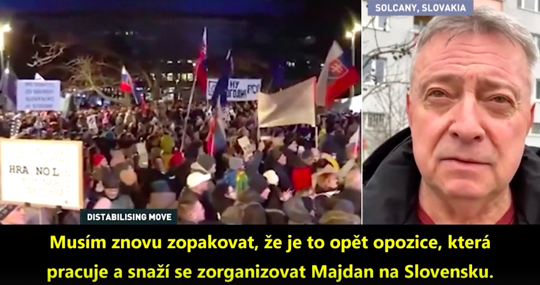 Slovenský premiér Robert Fico ve čtvrtek na tiskové konferenci [1] po skončení zasedání Bezpečnostní rady státu oznámil, že na radě byly předloženy důkazy o tom, že slovenská opozice je napojena na diverzní skupinu majdanistů, což jsou cizinci se zkušenostmi z Majdanu v Kyjevě a rovněž z Gruzie, kteří podle zjištění slovenské tajné služby SIS přišli na Slovensko, aby zorganizovali a řídili eskalaci a následně protesty a státní převrat na Slovensku.