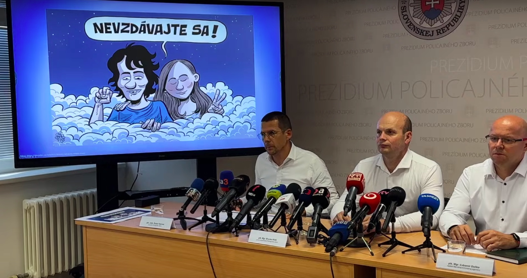 Prezident Policajného zboru SR Štefan Hamran za účasti prvého viceprezidenta PZ Branka Kišša a riaditeľa NAKA Ľubomíra Daňka na svojej politickej tlačovej konferencii bránil bezprecedentný a šokujúci zásah voči policajtom a šéfovi SIS chrániacich na Slovensku ústavu, právny štát a demokraciu. Pomohli si pritom bielymi košeľami, ako aj obrázkom zavraždeného novinára Jána Kuciaka a jeho snúbenice na televíznej obrazovke s nadpisom „Nevzdávajte sa!“. Vraj pokračujú v Kuciakovom odkaze „očistiť spoločnosť od grázlov“.