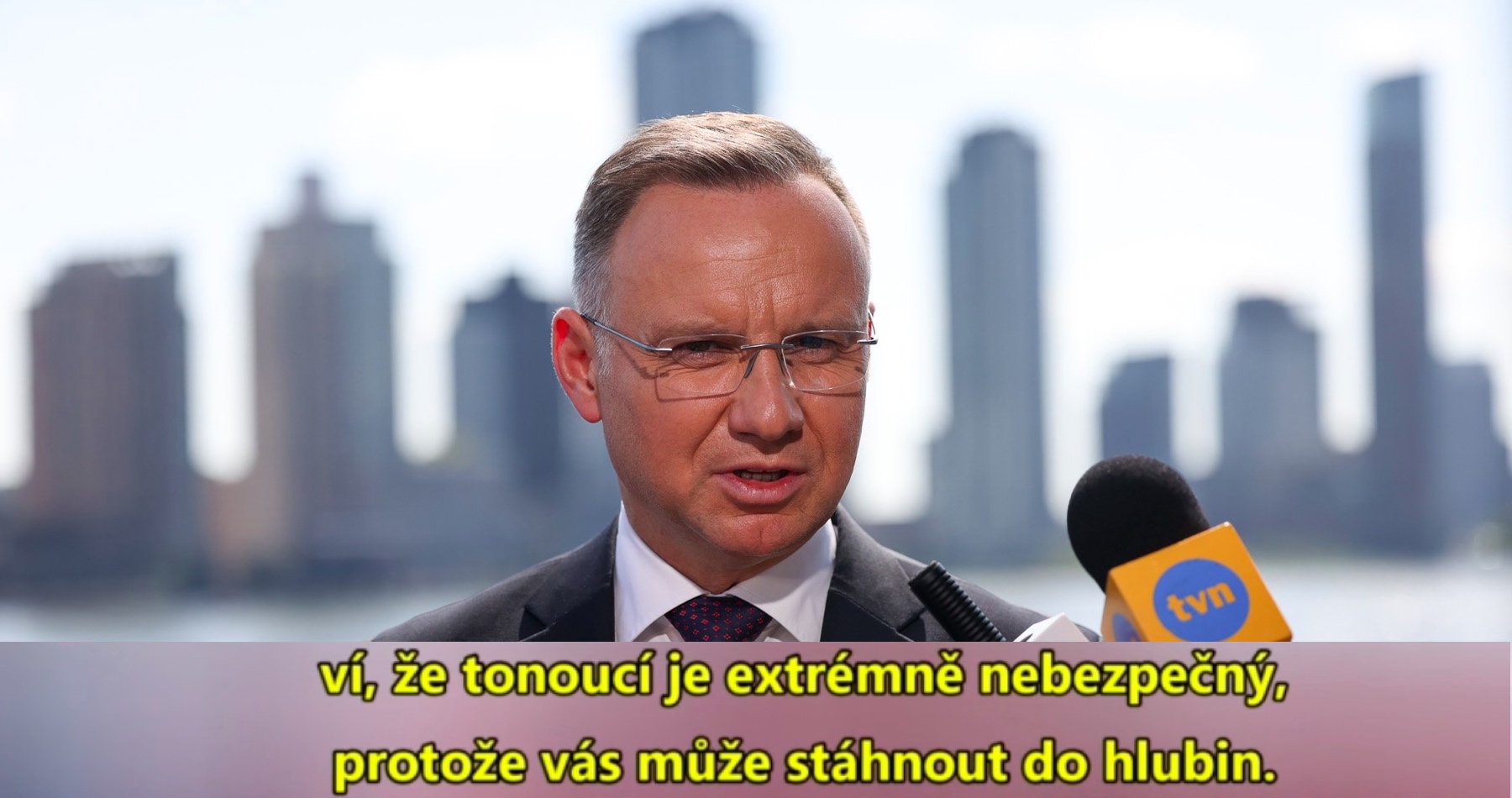 VIDEO: Polský prezident Andrzej Duda v New Yorku prohlásil, že kvůli pomoci tonoucí Ukrajině se Polsko nenechá stáhnout na ekonomické dno a Varšava musí myslet na své zájmy