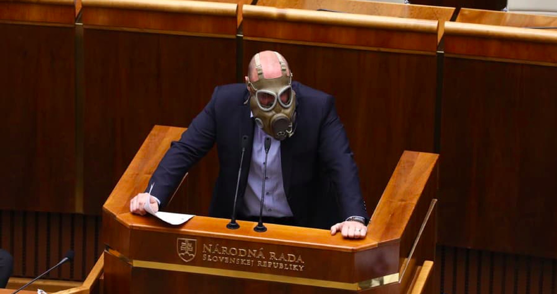 VIDEO: Poslanec ĽSNS Medvecký vo svojom parlamentnom prejave v plynovej maske poukazoval do akých absurdít môžu súčasné totalitné korona-opatrenia zájsť