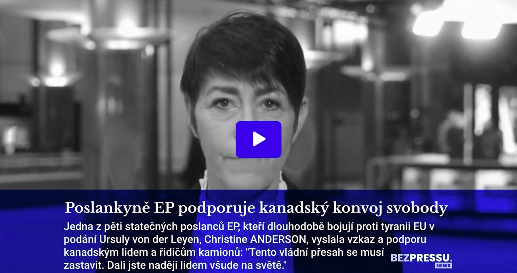 Jedna z pěti statečných poslanců EP, kteří dlouhodobě bojují proti tyranii EU v podání Ursuly von der Leyen, německá europoslankyně Christine ANDERSON, vyslala vzkaz a podporu kanadským lidem a řidičům kamionů.