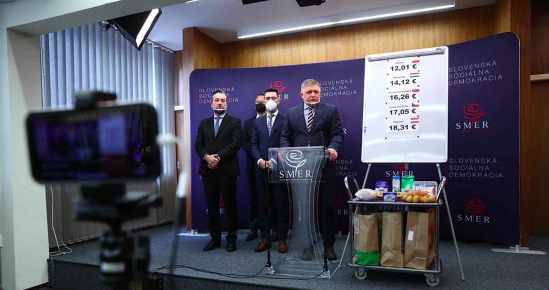 Šéf Smeru začal tlačovú konferenciu kritikou vlády. "Predseda parlamentu sa iba chechce, premiér Heger sa vytratil a minister financií sa vyzmizikoval. Táto vláda vlastne ani neexistuje," povedal na úvod predseda Smeru. Následne popísal cesty do zahraničia, kde nakupovali potraviny a z každého reťazca podľa vlastných slov priniesli ten istý nákup. "Boli sme v Česku, v Břeclavi, v Rakúsku, Poľsku a v Maďarsku," popísal trasy nákupov Fico s tým, že všetky potraviny nakúpili v tom istom reťazci.
