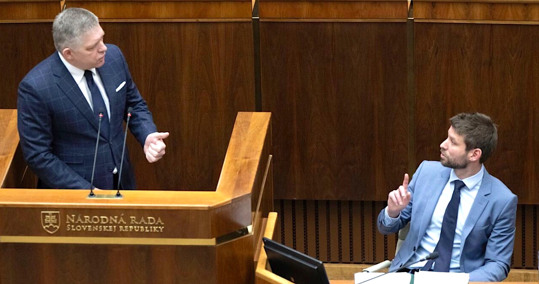 VIDEO: Premiér Fico konfrontoval Sorosovho sluhu Šimečku, ktorému pripomenul, že prejavy nesvojprávnemu predsedovi PS píšu Denník N & denník SME. „Najprv svojho oponenta diskreditujete, potom sa ho snažíte zatvoriť a potom zastreliť. Vlády na Slovensku sa nebudú meniť v uliciach, ale na základe výsledkov demokratických volieb. Môžte sa aj roztrhnúť a nadávať do diktátorov, ale suverénna zahraničná politika na všetky štyri svetové strany bude pokračovať,“ povedal predseda vlády vodcovi progresívcov