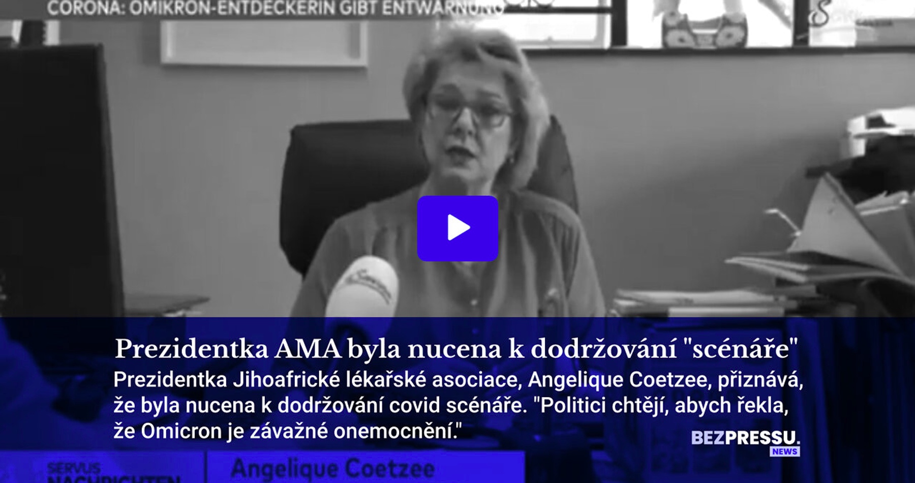 Prezidentka Jihoafrické lékařské asociace Angelique Coetzee, přiznává, že byla nucena k dodržování covid scénáře. "Politici chtějí, abych řekla, že Omicron je závažné onemocnění."