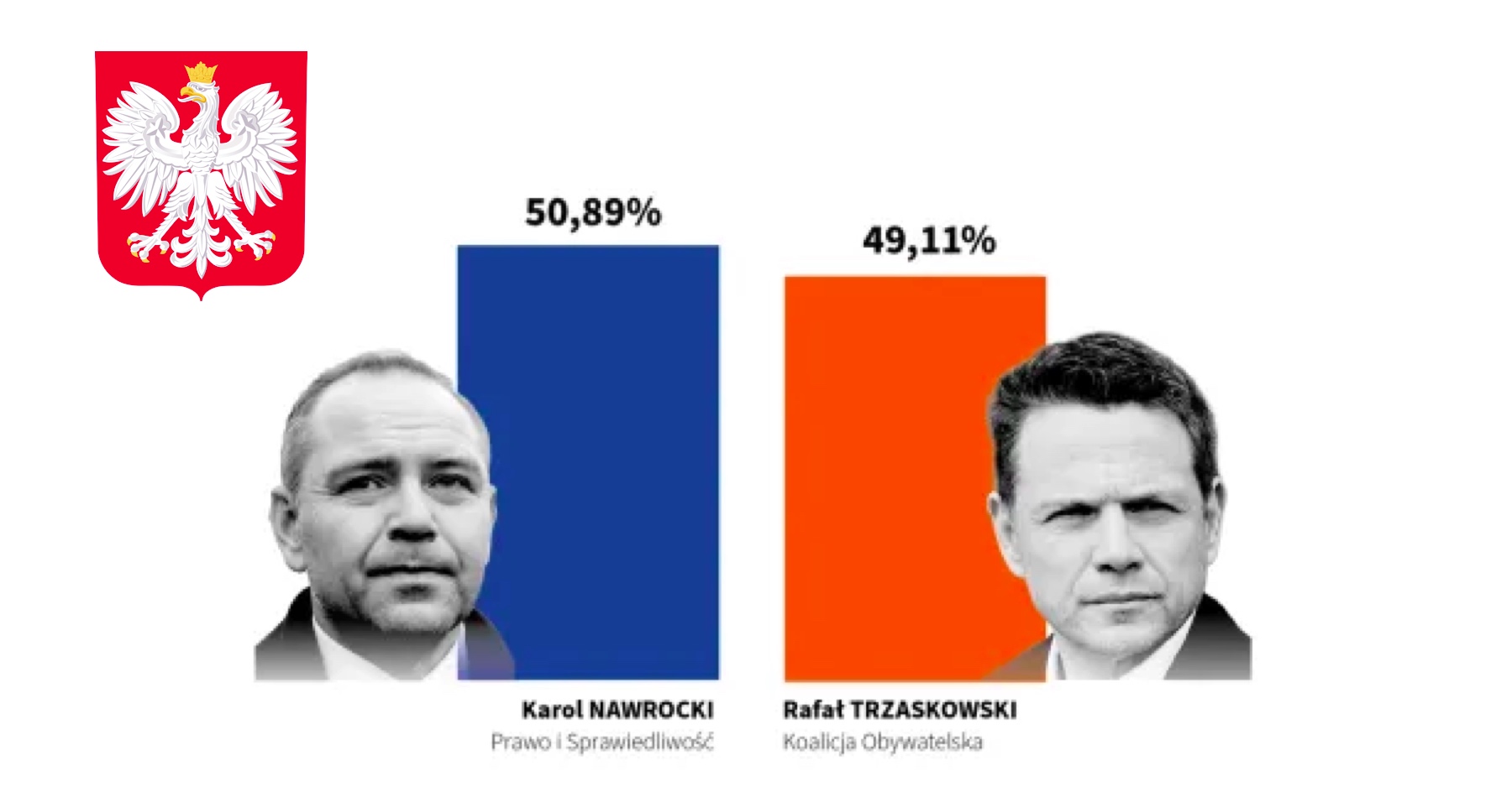 Víťazom poľských prezidentských volieb sa v noci na pondelok po sčítaní všetkých volebných okrskov stal kandidát opozície Karol Nawrocki so ziskom 50,9 percenta hlasov. Kandidát vládnej Občianskej koalície Rafal Trzaskowski skončil na druhom mieste so ziskom 49,1 percenta hlasov.