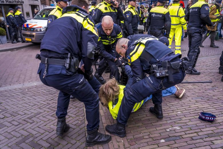 Na rozohnanie demonštrantov bola privolaná jazdná polícia, pričom policajti protestujúcich podľa záberov, ktoré odvysielala holandská verejnoprávna televízia NOS, rozháňali aj obuškami.