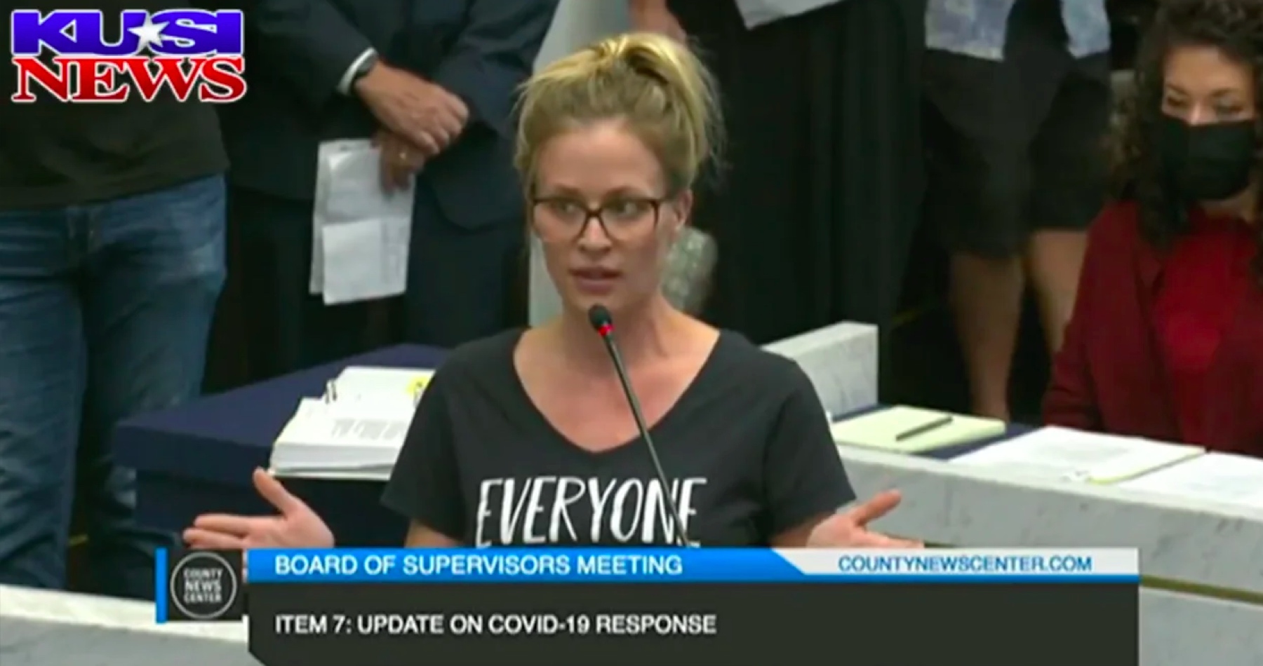 Vo videu rozpráva zdravotná sestra z amerického San Diega, že 18 mesiacov tam nebol žiadny problém. Vznikol až teraz a ona sa vraj stala hrozbou. Zdravotná sestra Heather Covell dala výpoveď kvôli povinnému očkovaniu zdravotníckeho personálu. Prišla sa pozrieť byrokratom od stola do očí, aby im povedala viac o následkoch ich činov.