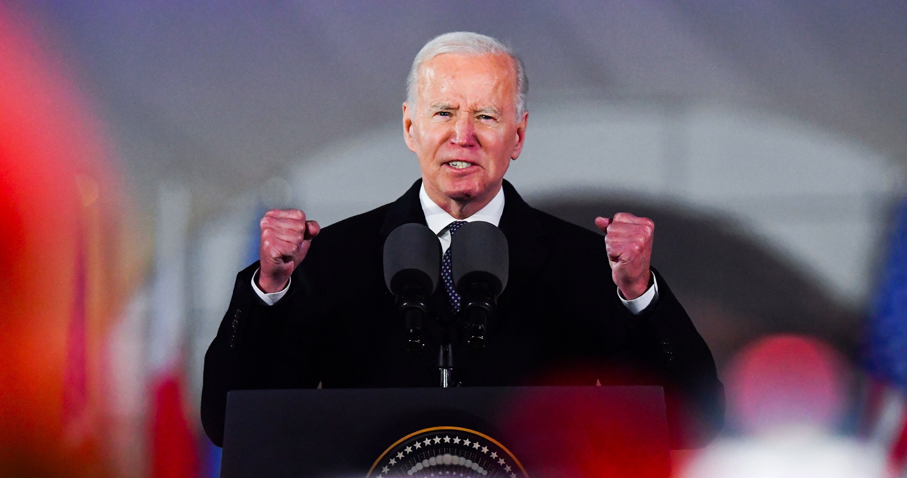 Ešte pred Bidenom vystúpil s krátkym prejavom aj poľský prezident Andrzej Duda. Ten sa USA poďakoval za podporu Ukrajiny. Keď podľa jeho slov vypukla invázia, všetci si mysleli, že Ukrajina "padne do troch dní". V tejto súvislosti vyzdvihol "hrdinstvo obrancov Ukrajiny" aj podporu celého slobodného sveta a Ukrajine naďalej deklaroval solidaritu, pričom zdôraznil, že "sloboda bez solidarity neexistuje".