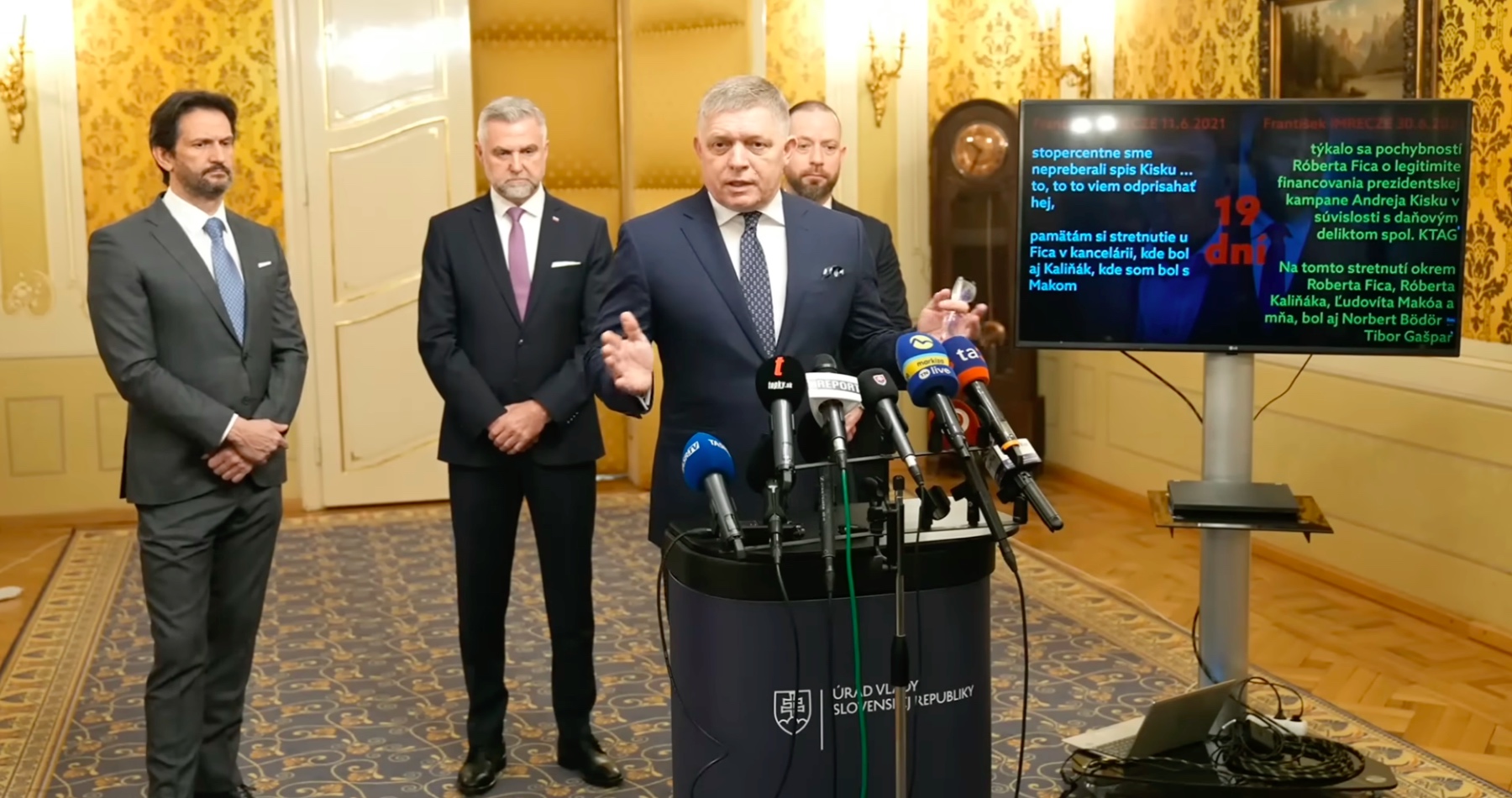 VIDEO: Robert Fico chce „systém kajúcnikov, udavačov a gaunerov“ upraviť, lebo súčasný stav je podľa neho „absolútne neakceptovateľný a nebezpečný pre demokratický politický systém“. Premiér zároveň kritizoval postup generálneho prokurátora Maroša Žilinku, ktorý sa podľa neho postavil na stranu opozície a vstúpil ako stranník do politického súboja