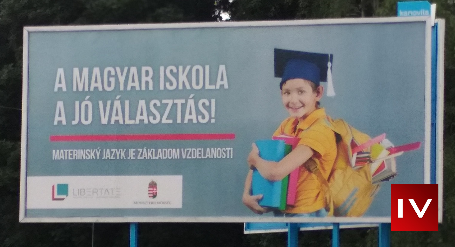 Na druhej strane je juh Slovenska vytapetovaný týmto bilboardom (MAĎARSKÁ ŠKOLA JE DOBROU VOĽBOU)