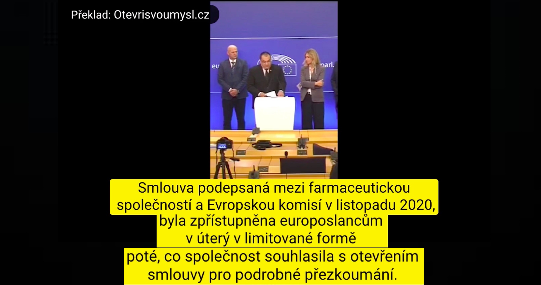 A cituji z článku Euroactive z 22. ledna 2021, kde se píše tohle: Smlouva podepsaná mezi farmaceutickou společností a Evropskou komisí v listopadu 2020, byla zpřístupněna europoslancům v úterý v limitované formě poté, co společnost souhlasila s otevřením smlouvy pro podrobné přezkoumání. Cože? Cože? Takže vy evropským občanům vnucujete lékařský produkt, aniž by věděli, co je obsahem této smlouvy? Nejen, že to neví oni, my to nevíme. My to nevíme.