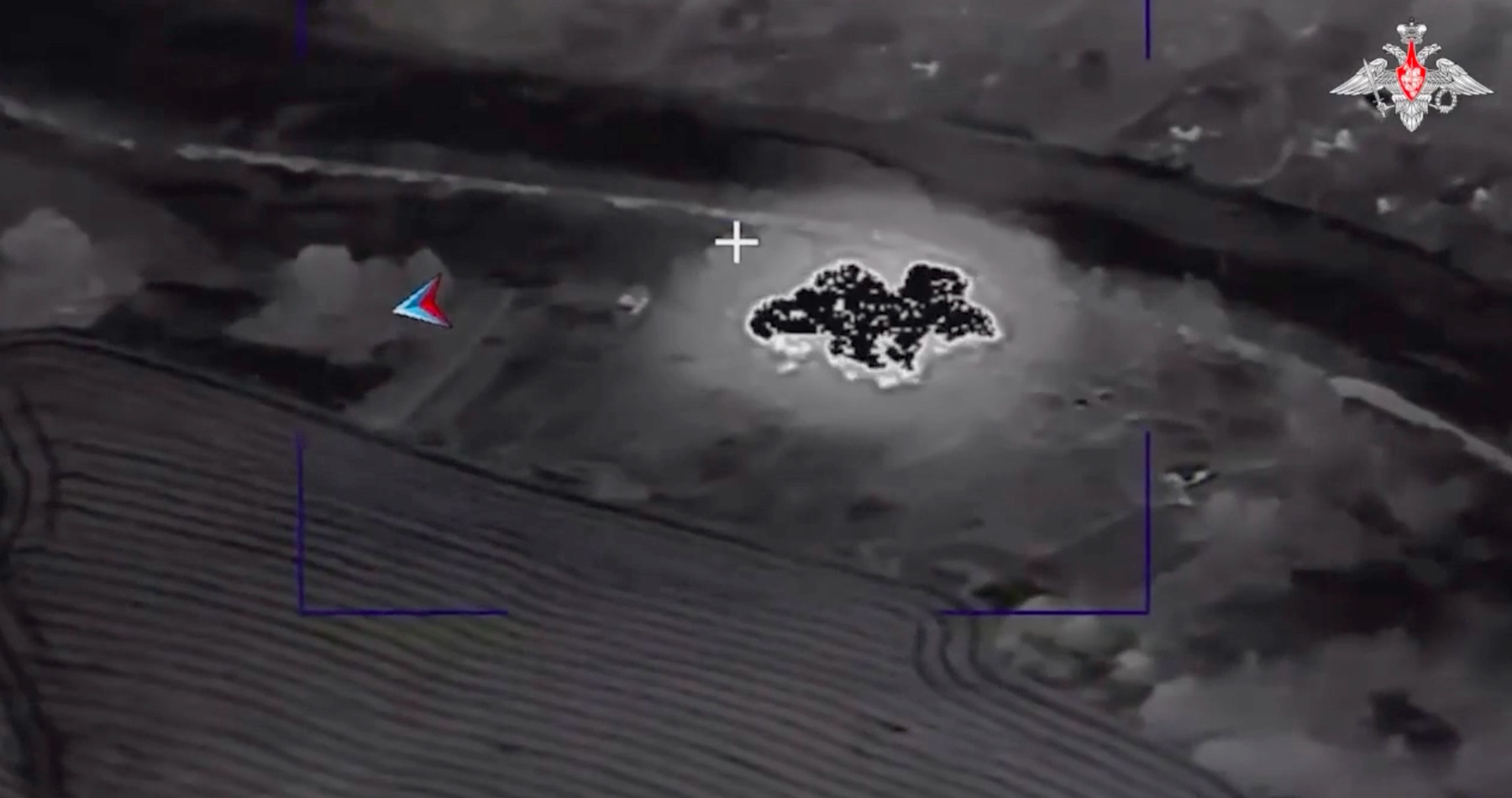 Ruský úder sa uskutočnil v noci na nedeľu vo vidieckej oblasti. Bolo na ňom vidieť, ako niekoľko vozidiel prechádza po ceste a znásedne astavujú pri veľkej budove, ktorú následne zlikvidoval silný výbuch.