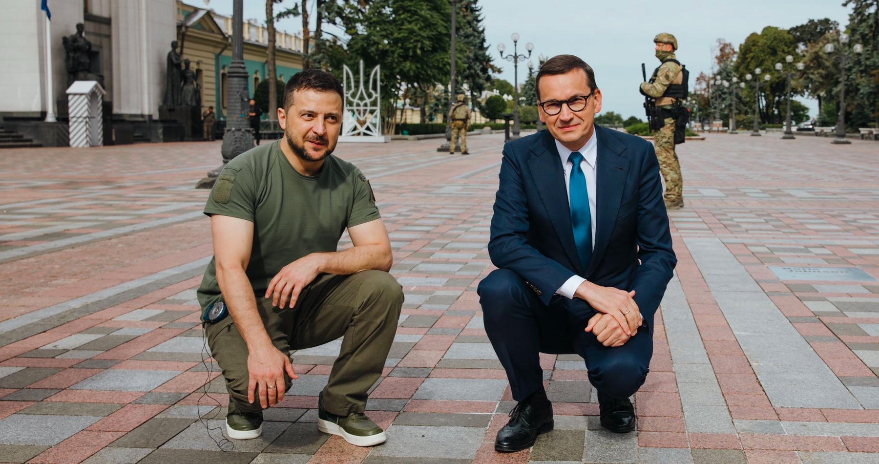 Morawiecki pricestoval do ukrajinskej metropoly s lotyšským prezidentom Egilsom Levitsom. Po rozhovoroch s ukrajinským prezidentom Volodymyrom Zelenským uviedol, že Ukrajina musí zvíťaziť vo vojne s Ruskom, keďže ruské víťazstvo by znamenalo zánik európskych hodnôt.