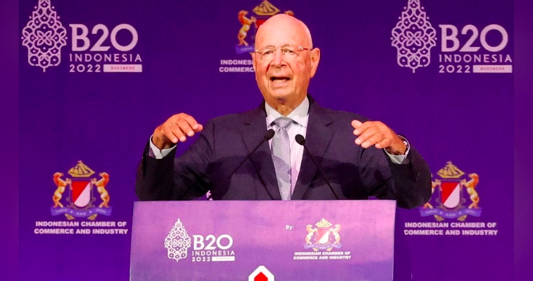 Projev Klause Schwaba na summitu B20 konaného v rámci summitu G20 na Bali v Indonésii