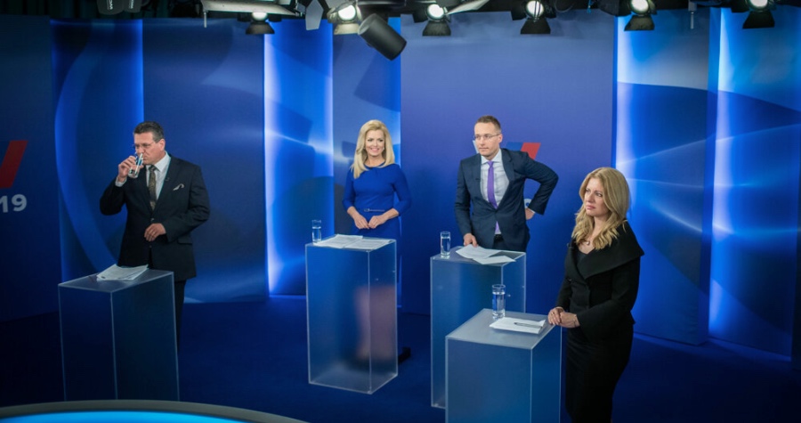 Zuzana Čaputová a Maroš Šefčovič. Pred sobotným druhým kolom prezidentských volieb sa finalisti stretli v utorok večer v priamom televíznom súboji na Markíze. Diskusiu moderovali Michal Kovačič a Zlatica Švajdová Puškárová.