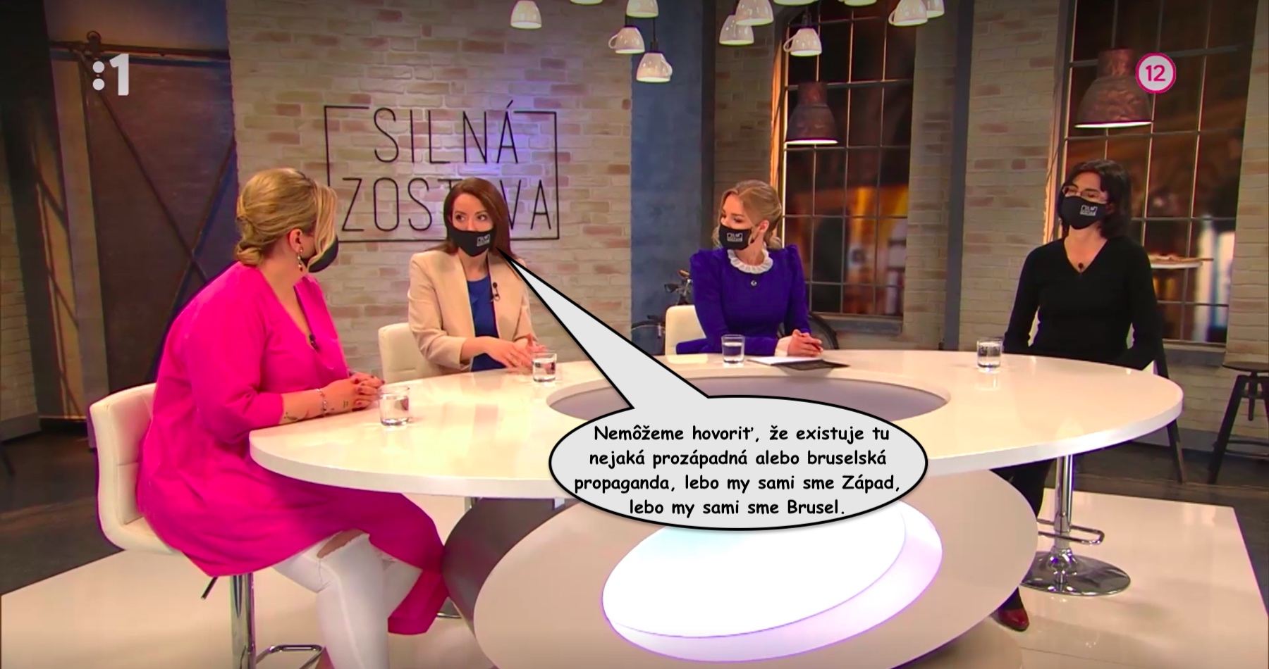 Dňa 29. apríla 2021 RTVS odvysielala diskusnú reláciu Silná zostava o prokremeľskej propagande. O diskusiu však išlo len podľa mena, pretože tam zásadne chýbala názorová pluralita. Medzi účastníčkami (V. Cifrová Ostrihoňová – moderátorka, M. Zavacká, K. Klingová, S. Salátová) vládol až harmonický súlad, ktorý však nezodpovedá názorovým rozporom v spoločnosti. Nedostatok plurality verejnosť kritizovala ešte pred odvysielaním relácie, ukázalo sa však, že akési „uzavreté sesterstvo“ si reláciu vlastne sprivatizovalo. Vedenie RTVS by pritom mohlo pochopiť, že určitá pluralita by bola aj na prospech jeho vlastnej propagandy. Inteligentnejší propagandisti by si zrejme pozvali aspoň jeden odlišný názor, aby diskusia vzbudzovala aký-taký pluralitný dojem, hoci ani pri pomere 3:1 by o žiadnu vyváženosť nešlo. Kvôli neserióznemu formátu tak účastníčky skĺzavali za hranicu absurdity a dopracovali sa až k tvrdeniu, že na Slovensku nepôsobí proamerická propaganda.