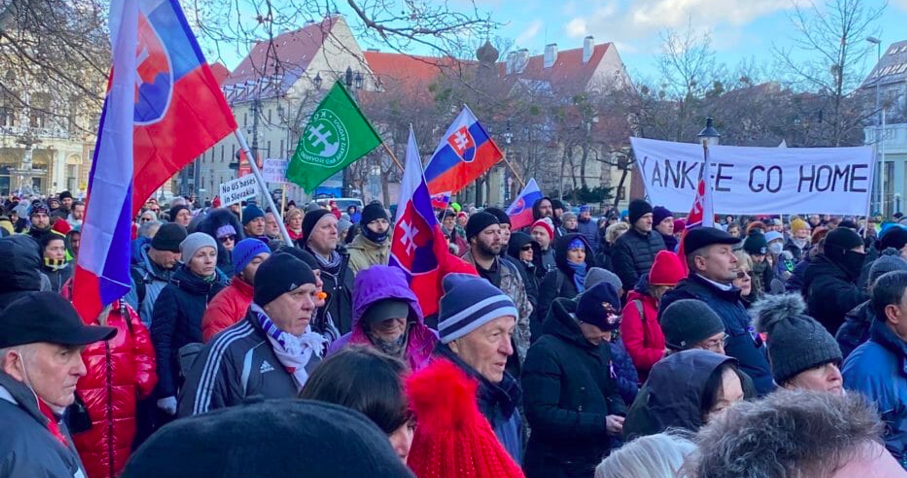 VIDEO: Slováci protestovali pred americkou ambasádou proti okupačnej dohode s USA: „Nechceme tu jadrové zbrane!“