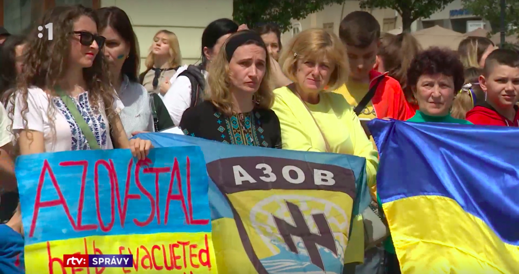 Uplynulý víkend sa hlavnom meste Slovenskej republiky konala proukrajinská demonštrácia ukrajinských utečencov a ich detí, ktorí okrem ukrajinských vlajok mávali aj vlajkami neonacistického práporu Azov a celý dav skandoval nacistické pozdravy Ukrajinskej oslobodzovacej armády (UPA) Stepana Banderu.