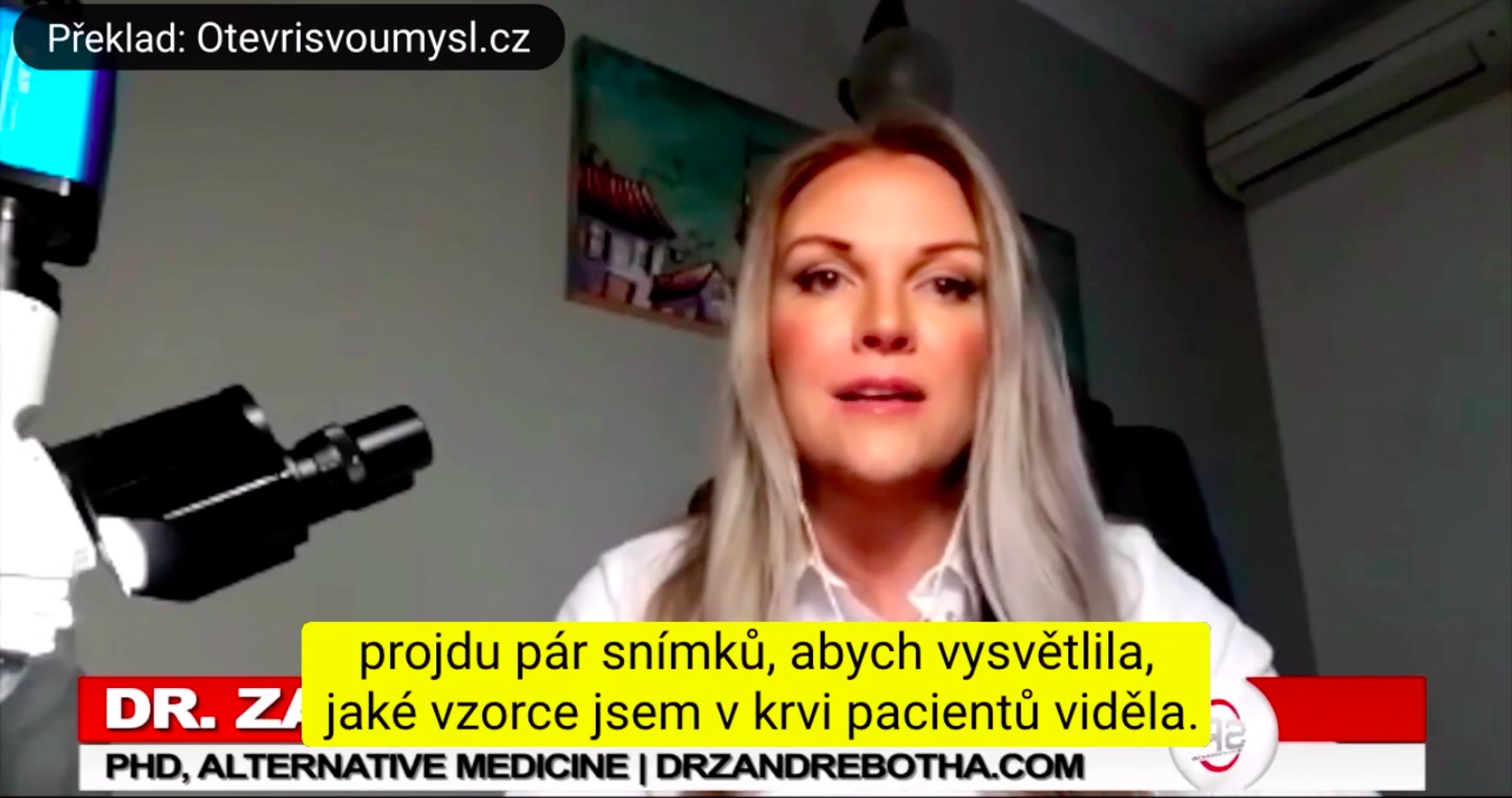 Lékařka dr. Zandre Bothaová analyzovala obsah covid injekcí a také krev očkovaných pacientů, kteří za ní přicházeli s vážnými zdravotními problémy. Objevila dost alarmující věci... černé kulaté disky něčím pospojované, černá vlákna a více... poslechněte si její vysvětlení.