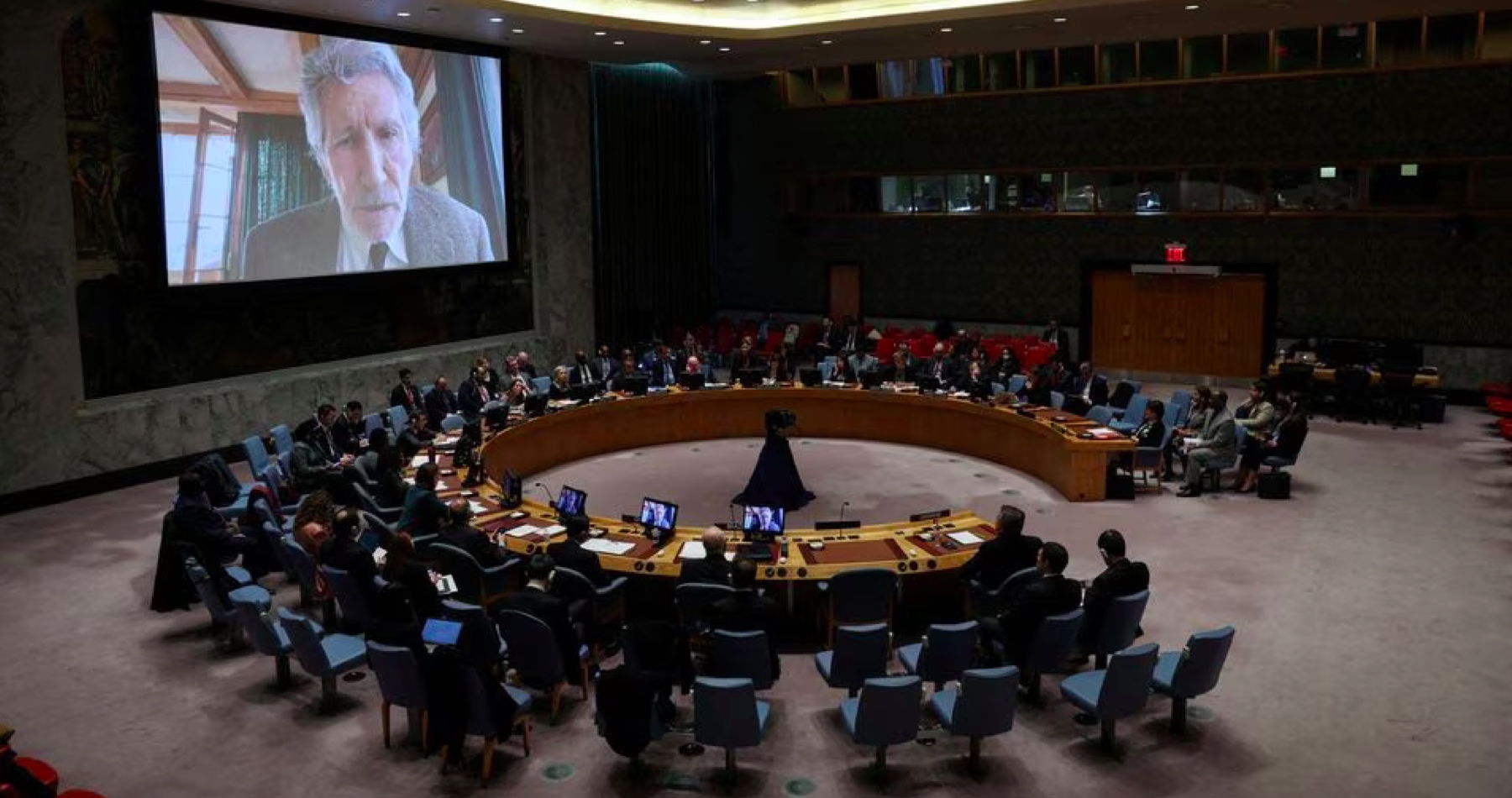 Roger Waters na pôde Bezpečnostnej rady OSN uviedol, že boje na Ukrajine „naplnili vrecká veľmi, veľmi malej skupiny ľudí“.
