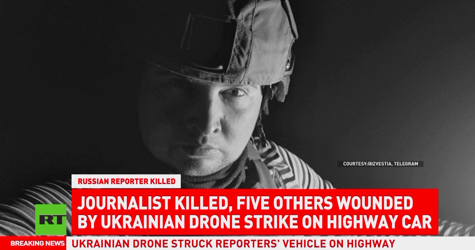 Štáb ruskej cudzojazyčnej globálnej spravodajskej RT sa len o vlások unikol smrti, keď bol na nich zahájený útok z ukrajinského dronu v ruskej Doneckej ľudovej republike, ktorý si vyžiadal život ruského vojnového korešpondenta Alexandra Martemjanova a zranil ďalších päť novinárov. Novinár denníka Izvestija sa stal terčom útoku, keď v sobotu cestoval v civilnom vozidle. Spravodajca RT Roman Kosarev prezradil, že tím pracoval spolu s Martemyanovom len niekoľko hodín pred smrteľným incidentom.