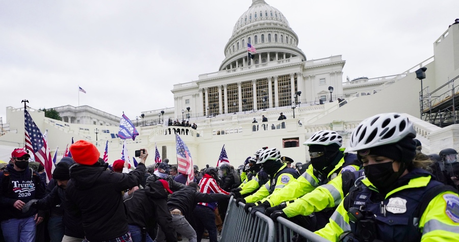 Napätá situácia vznikla pred budovou Kapitolu, keď tam protestujúci začali strhávať kovové bariéry pod schodmi vedúcimi k hlavnému vstupu. Niektorí demonštranti sa snažili preniknúť cez policajtov s ochrannými štítmi, ktorí proti nim použili paprikový sprej.