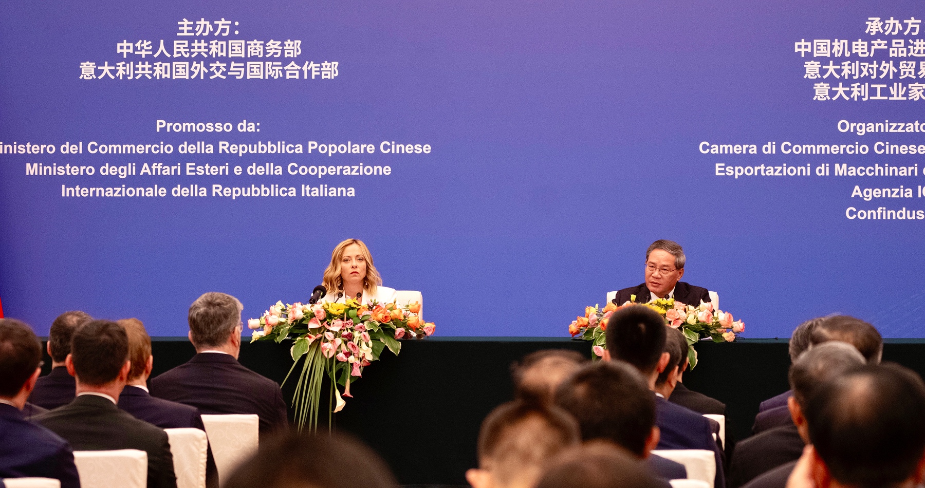 Talianska vláda sa snaží o spravodlivejšie obchodné vzťahy s Čínou, povedala Meloniová, ktorá sa v Pekingu zúčastnila na taliansko-čínskom podnikateľskom fóre. Podujatie označila za vynikajúcu príležitosť na posilnenie partnerstva, pričom poukázala na veľký deficit v talianskom obchode s Čínou a nerovnováhu v oblasti investícií.