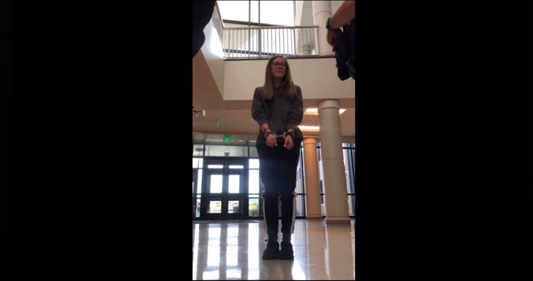 Bolo počuť, ako zatýkajúci policajt povedal tínedžerke, že uzamknutie je jej vinou, ale mladistvá odmietala opustiť budovu, kým ju neodviedli v putách.