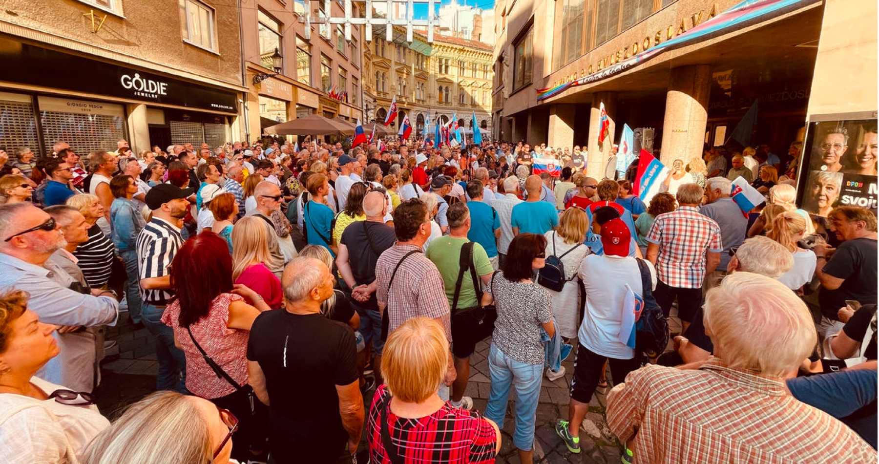 Pobúrená verejnosť má plné zuby zvrátenej progresivistickej ideológie manifstujúcou vlajkami Ukrajiny a LGBT