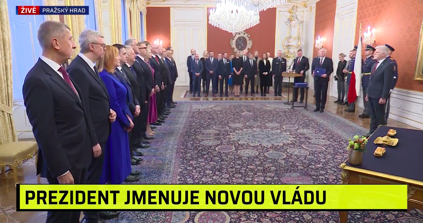 Česku od pondelka 15. decembra 2025 vládne kabinet premiéra Andreja Babiša. Vládu zloženú z hnutí ANO, SPD a strany Motoristi sebe na Pražskom hrade vymenoval český prezident Petr Pavel v zložení, ktoré mu pred týždňom Babiš oficiálne navrhol. Ministerstvo životného prostredia, na ktoré chceli Motoristi pôvodne navrhnúť Filipa Turka, zatiaľ povedie ich predseda Petr Macinka, ktorý sa zároveň stal šéfom českej diplomacie. Vymenovaním novej vlády sa skončilo štvorročné pôsobenie vlády Petra Fialu.