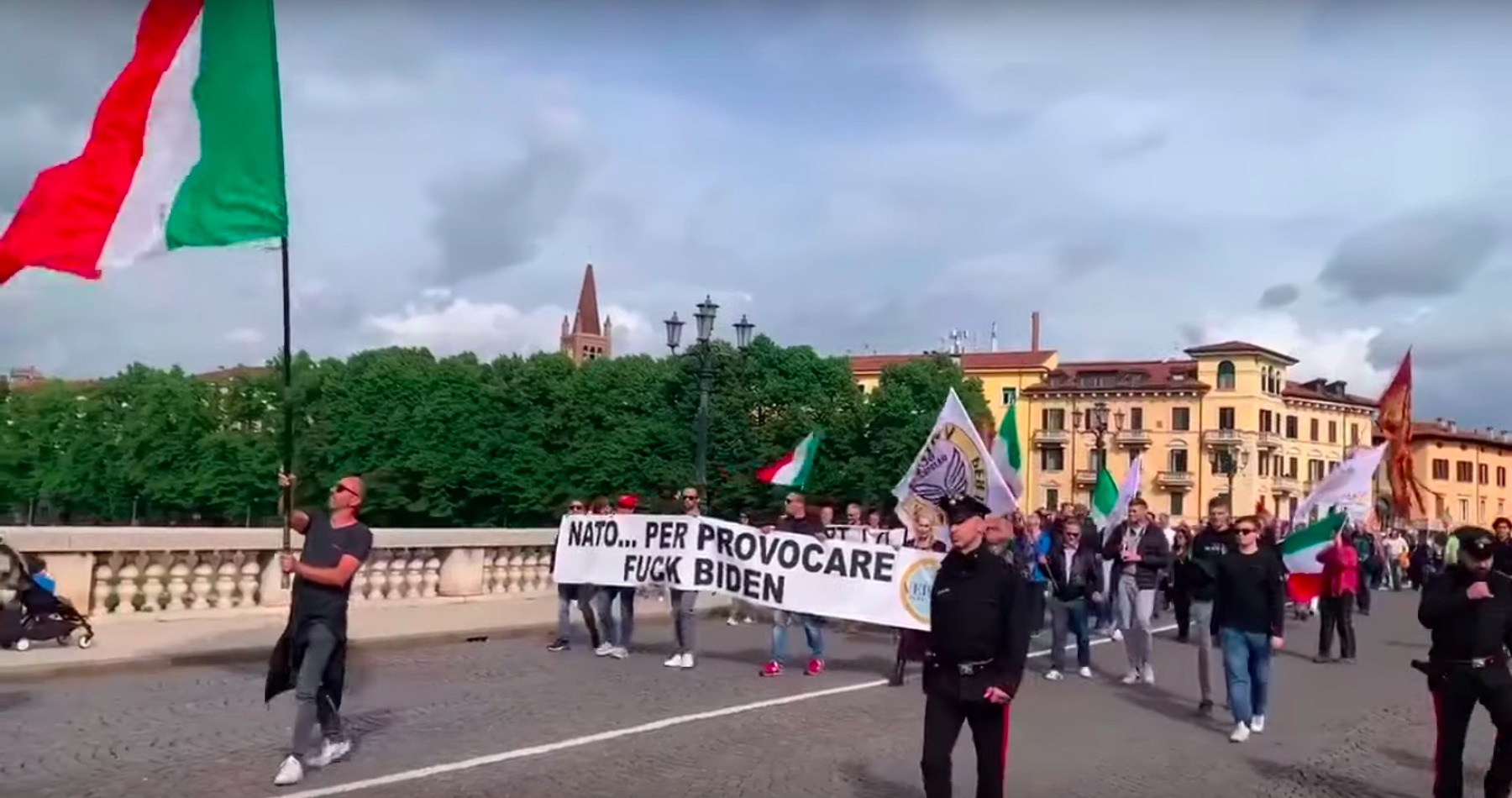 Demonstration in Verona against Biden, NATO and the EU: "Fuck Biden!" pic.twitter.com/bAG8KJfaRo