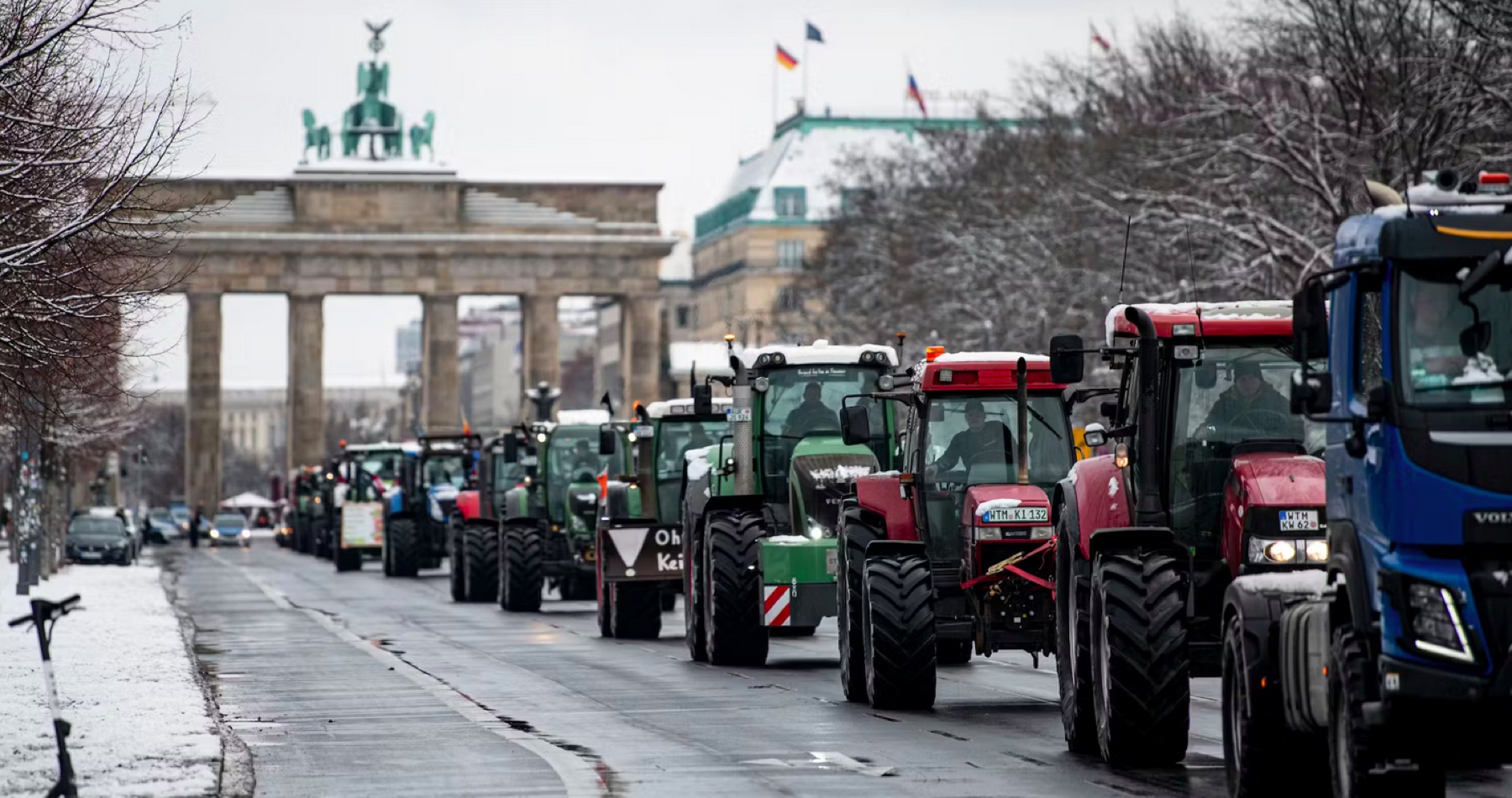 Ulice Berlína zablokovalo viac než 5000 trúbiacich traktorov, celkovo sa do protestov podľa Nemeckého združenia poľnohospodárov (DBV) zapojilo až 100.000 ľudí. Poľnohospodári chcú zvrátiť rozhodnutie vlády zrušiť daňové úľavy na poľnohospodárske vozidlá a dotáciu poľnohospodárskej nafty.