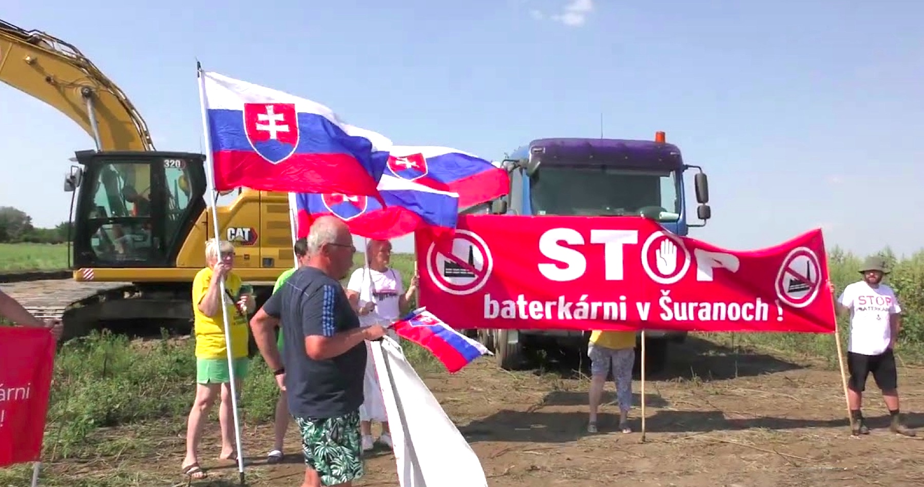 VIDEO: V Šuranoch sa začali prípravné práce na budovanie kontroverznej baterkárne. Odporcovia výstavby prišli vyjadriť svoj nesúhlas