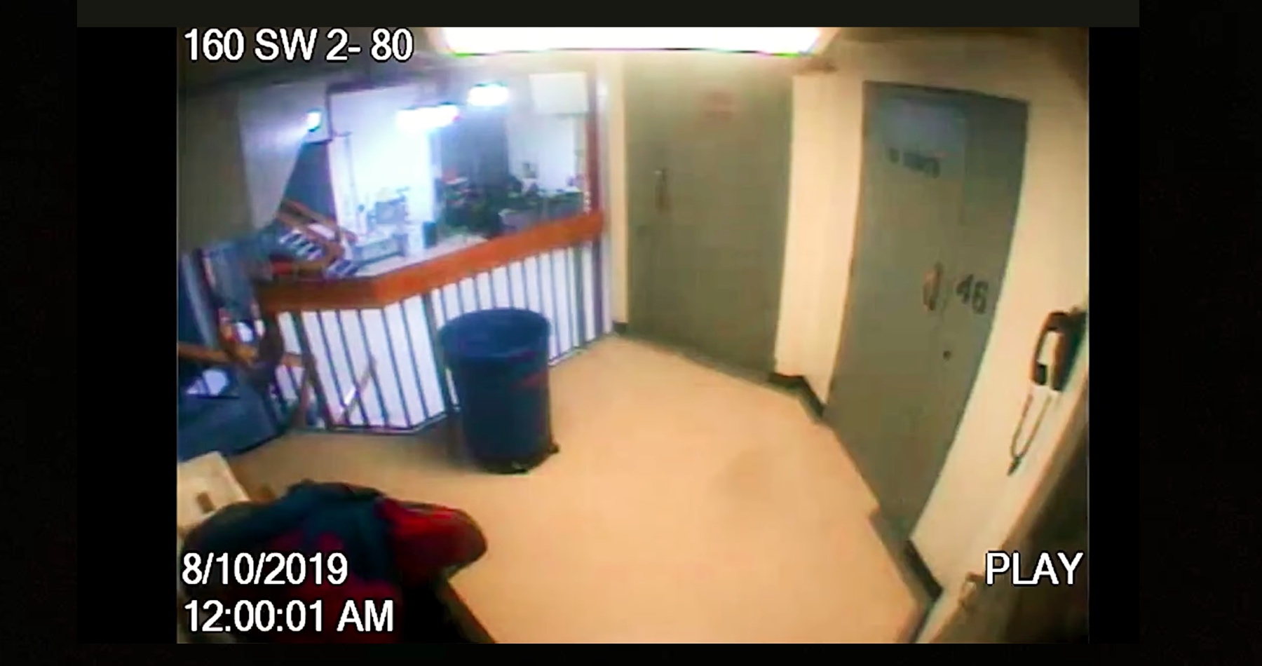 Videozáznam ponúkol len čiastočný pohľad na schodisko vedúce k Epsteinovej väznici v špeciálnej ubytovacej jednotke väznice, a nie na samotnú celu. Zábery náhle preskočia z 23:58 9. augusta na 24:00 10. augusta: