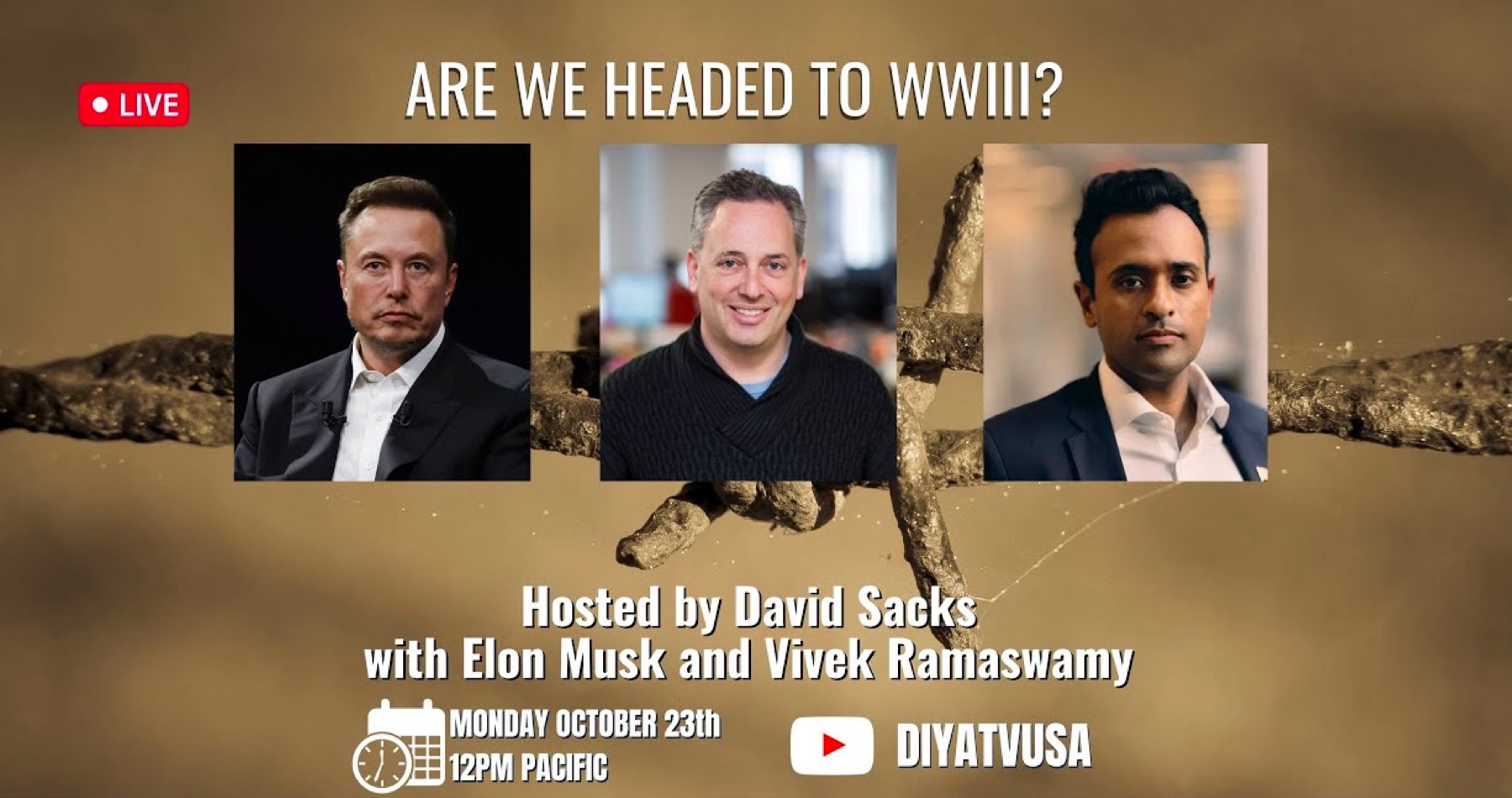 VIDEO: Videozáznam debaty Elona Muska o situačnej aktualizácii v súvislosti s konfliktom v Izraeli a na Ukrajine & ako sa vyhnúť vypuknutiu 3. svetovej vojny (Inšpirujúca diskusia plná triezveho pohľadu na aktuálne dianie americkými očami s českými titulkami)