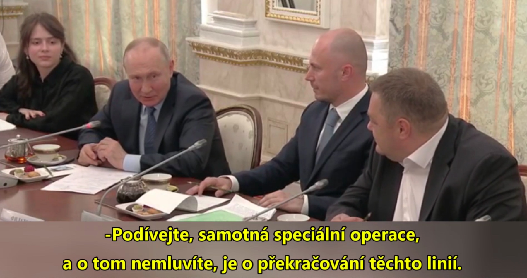 VIDEO: Vladimir Putin na setkání s válečnými zpravodaji a blogery naznačil, že ruská armáda se nezastaví na hranicích Novoruska. Ruský prezident tím znovu vyslal symbol směrem ke Kyjevu, k Varšavě, k Praze a možná ještě dál