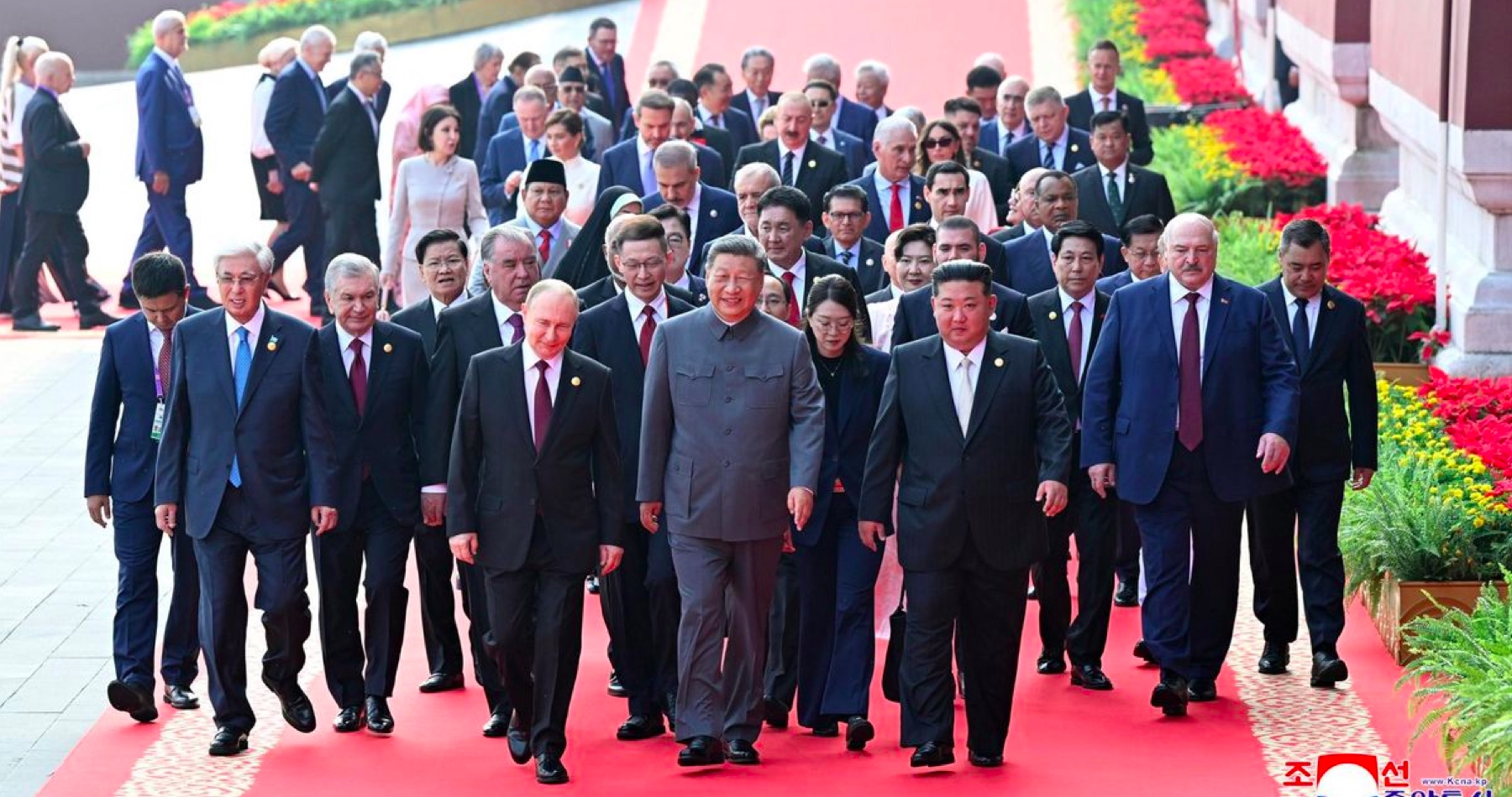 Kľúčovým symbolickým prvkom prehliadky nebola ani tak výzbroj, ako skôr politická konfigurácia platformy. Umiestnenie Si Ťin-pchinga medzi Putina a Kim Čong-una vizuálne zachytilo aktualizovanú politickú geometriu sveta: Východ tvorí centrum moci, v ktorom Čína vystupuje ako koordinátor, Rusko ako podporný partner a ostatné štáty ako strategickí spojenci v rámci vznikajúceho bloku.