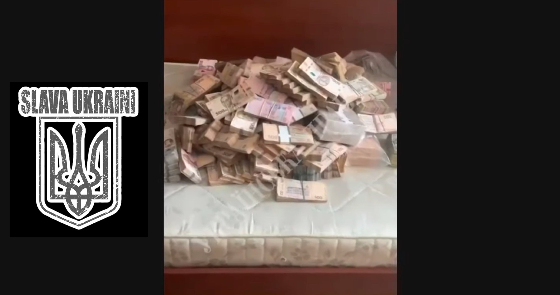 Záběry zachycují hromadu peněz na matraci. Podle portálu se tehdy našlo přes 17 milionů hřiven, stovky tisíc dolarů a eur v hotovosti.