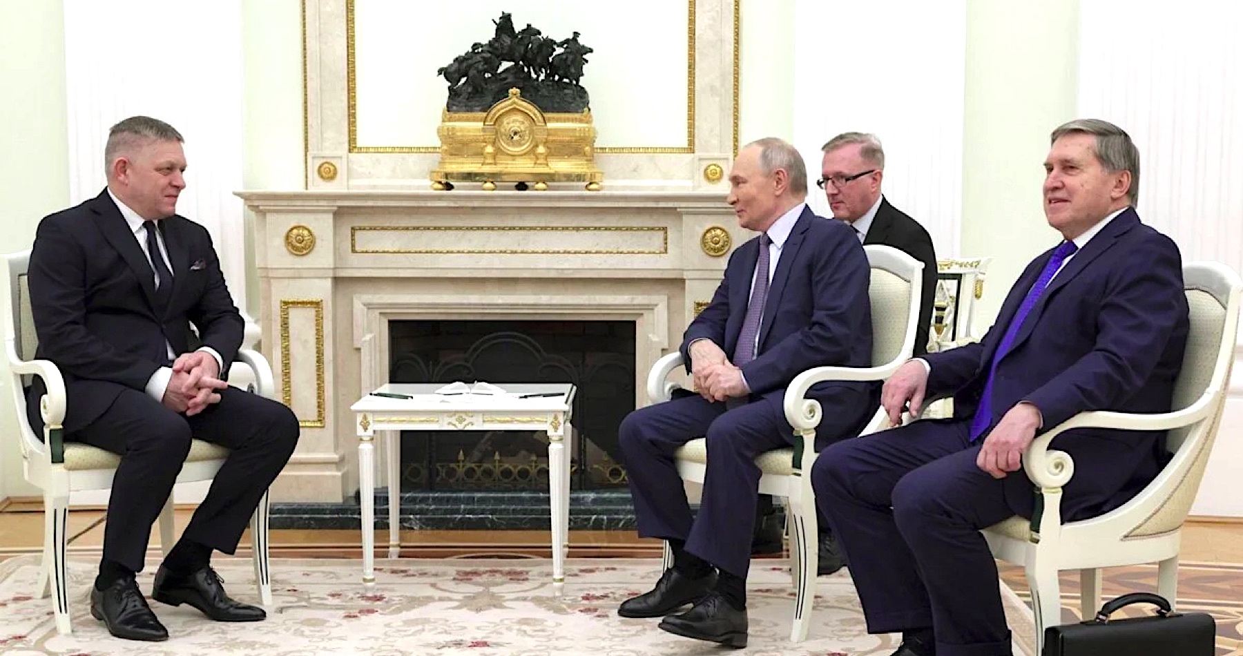 Ruský prezident Vladimir Putin bude v piatok 9. mája viesť rozhovory so slovenským premiérom Robertom Ficom, povedal v utorok novinárom poradca šéfa Kremľa Jurij Ušakov. Obaja lídri budú podľa neho diskutovať o bilaterálnych otázkach a medzinárodných témach vrátane situácie na Ukrajine. TASR o tom informuje na základe správ agentúr TASS a AFP.