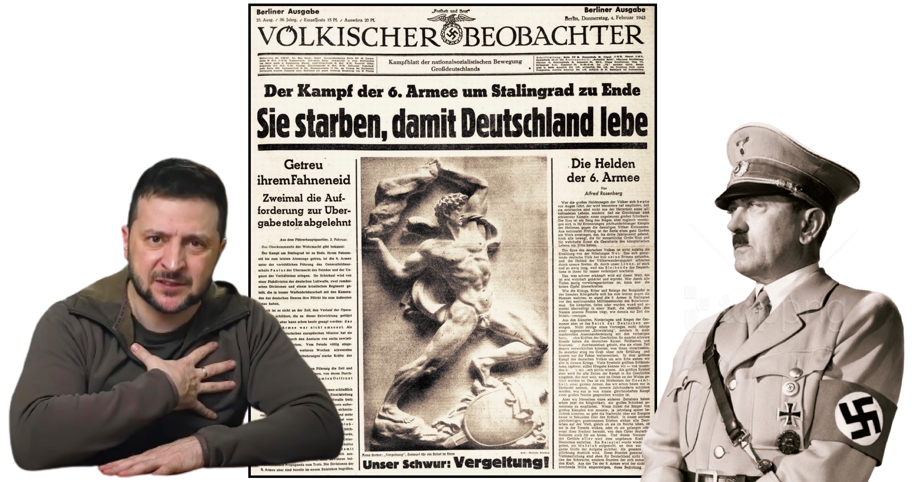 Vodca banderovského režimu v Kyjeve Zelenskyj nepoužíva v boji proti Rusku len nacistov z Azovu, ale na protiruskú propagandu si požičiava aj citáty zo straníckych novín nacistickej NSDAP